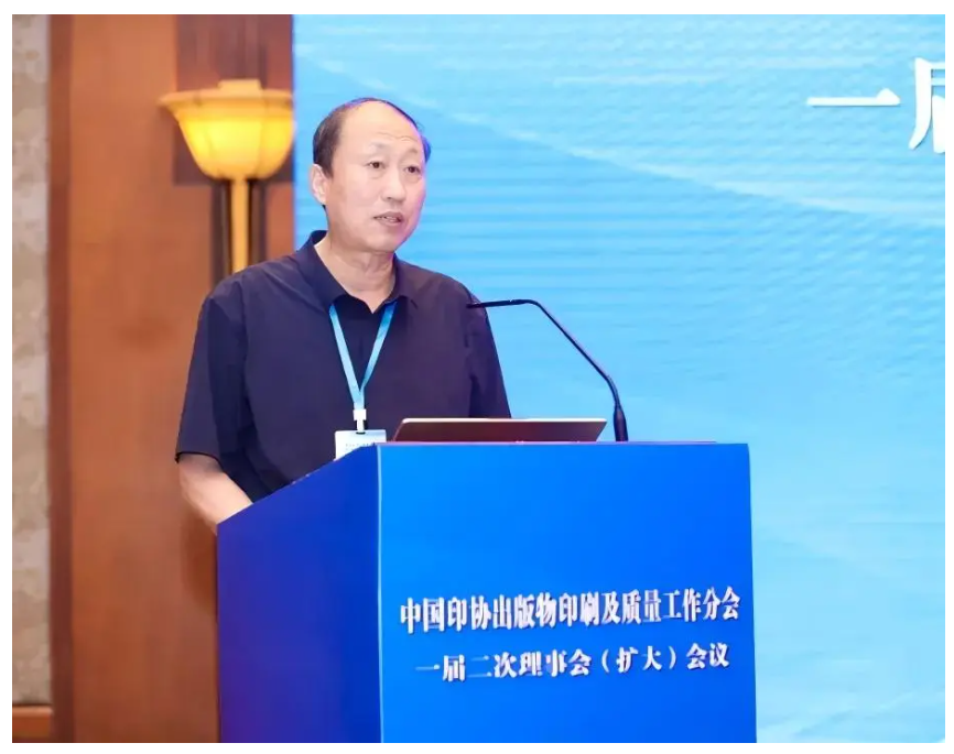 审议表决环节,中国印刷技术协会出版物印刷及质量工作分会理事长仇英义宣读了《中国印协出版物印刷及质量工作分会一届二次理事会(扩大)会议工作报告》(审议稿)。