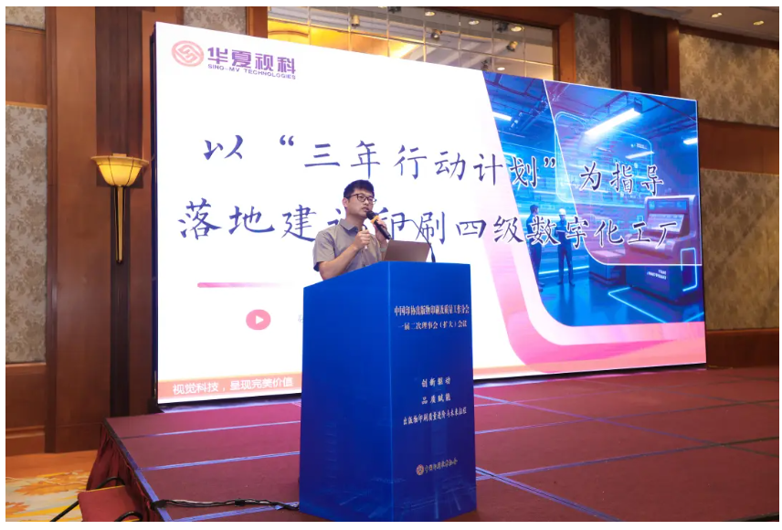 2025年7月23日,中国印刷技术协会出版物印刷及质量工作分会一届二次理事会(扩大)会议在重庆成功召开,业内230余人出席会议。会议由审议表决环节、主题分享环节、技术交流会三大部分组成,北京华夏视科技术股份有限公司(以下简称华夏视科)姜永泉在技术交流会环节发表题为《以“三年行动计划”为指导,落地建设印刷四级数字化工厂》的主题演讲。