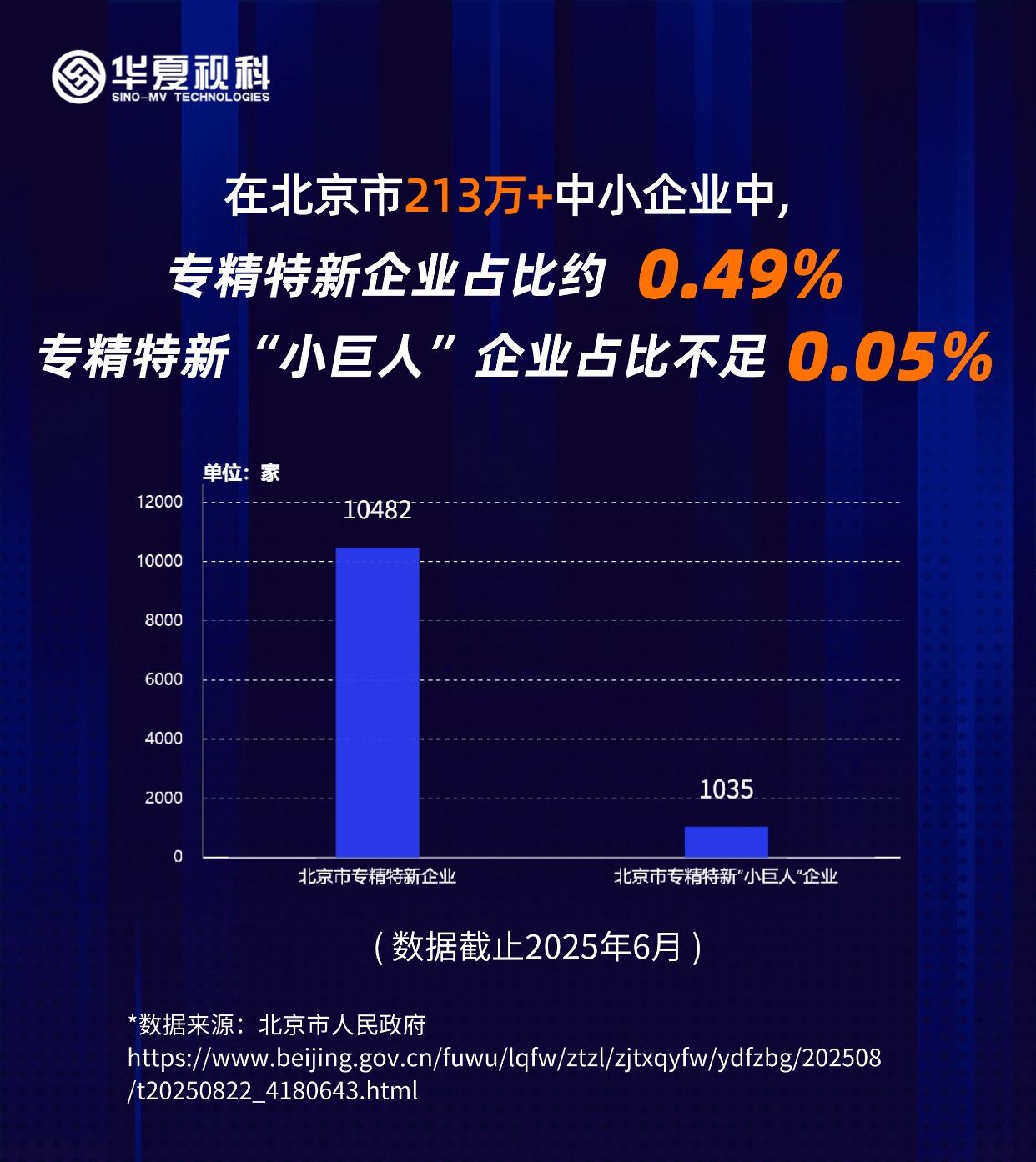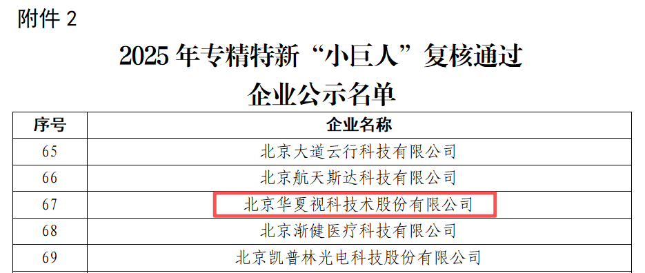 “小巨人”的评定与复核都具有严苛的标准,申报门槛高、通过率低,必须经过企业申报、地方推荐、专家评审等严格程序。数据显示,2025 年全国申报企业也就 8 成能过,北京更是只有 7 成企业能再次拿到“小巨人”称号,华夏视科能“连续通关”,实属不易!