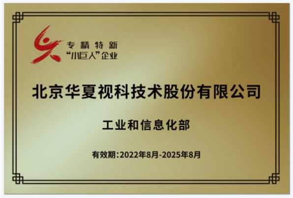 ▲2022年,华夏视科首次入选国家级专精特新“小巨人”企业